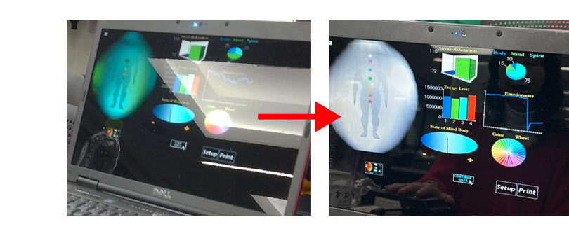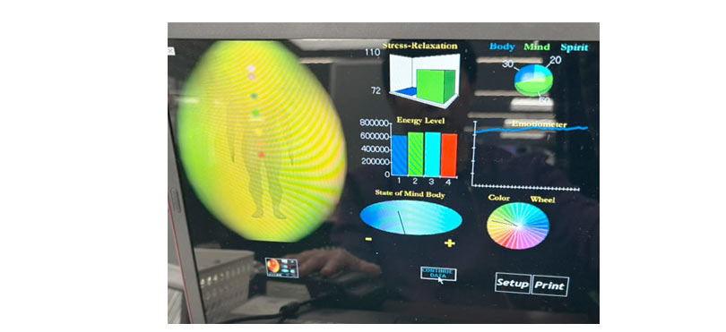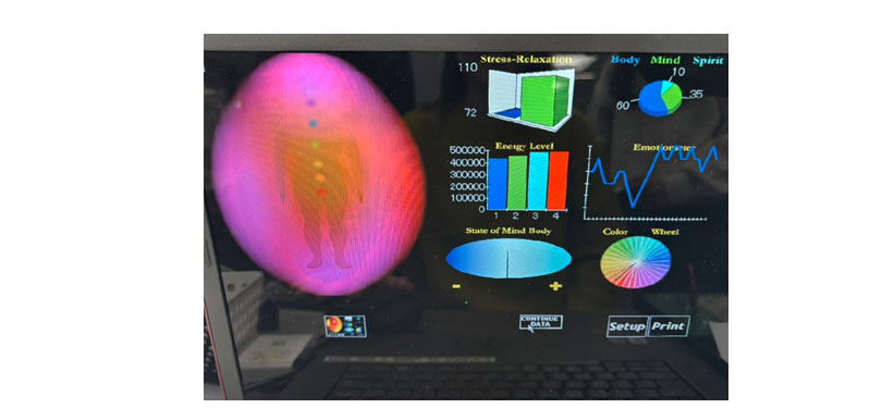 そのときにオーラ測定しながら「サリザー」をご自身で操作してもらい変化を楽しんで頂きました。 ただ動画も撮りましたが、お客さまの顔や、他のブースのお客様等も映っていて、編集もモザイクだらけとなり見づらく公開を断念させて頂きました。